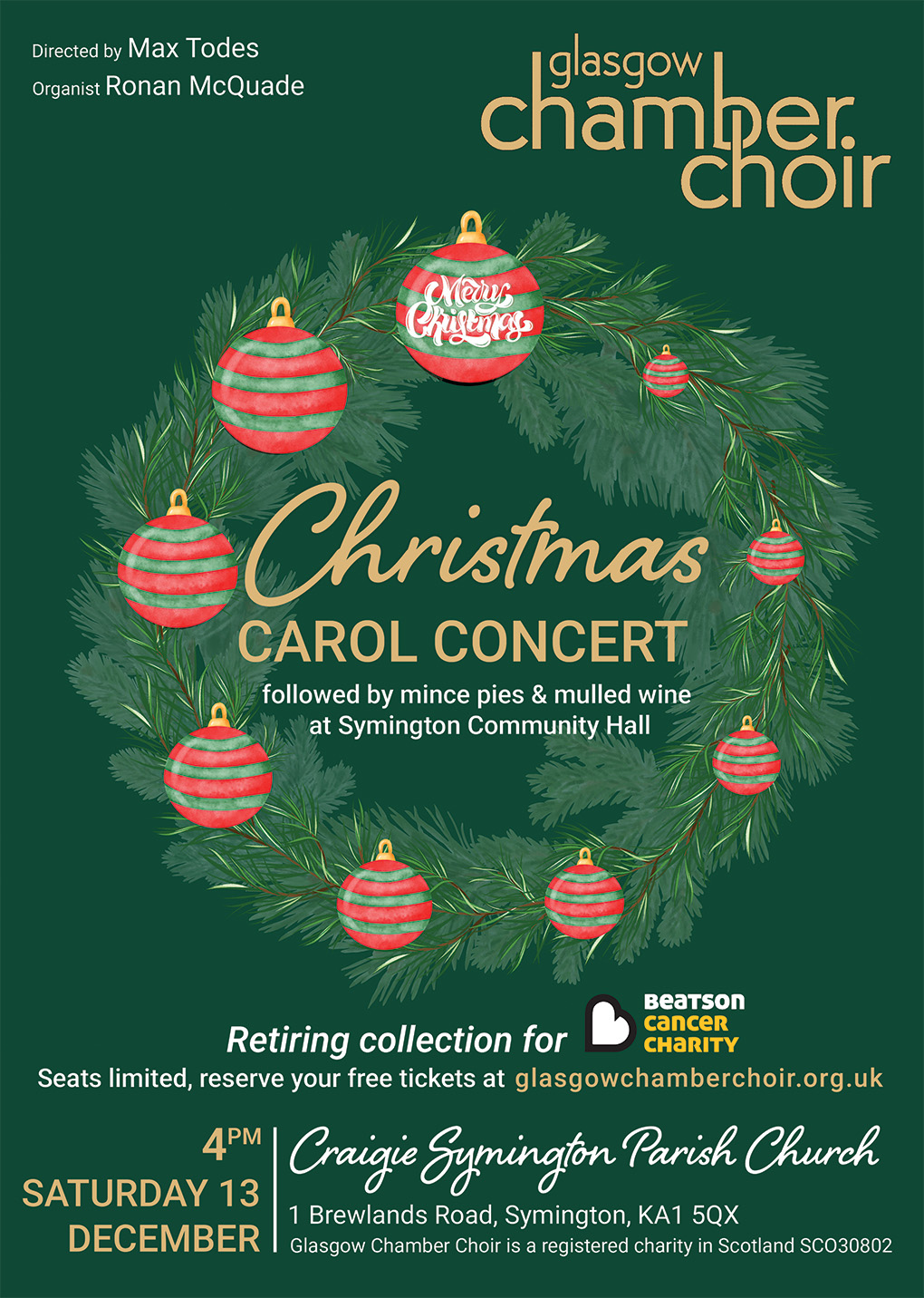 Calling all previous members! Join us to celebrate Glasgow Chamber Choir's 30th Anniversary on Saturday 23rd November for a come and sing day at St Margaret's Episcopal Church, Glasgow. The day will start from 10.30am, [...]